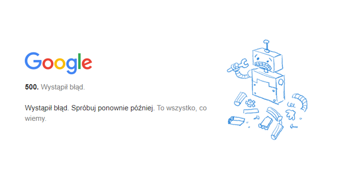 Awaria pojawiła się około godziny 13 czasu warszawskiego. Z powodu awarii nawet 90 proc. Około godziny 14 przedstawiciele google poinformowali, że w przypadku zdecydowanej większości użytkowników problem powinien zostać rozwiązany. Podsumowaliśmy tutaj niektóre z największych ogłoszeń z programu. Zgłoszenia użytkowników wskazują, że problemy z serwisem google występują od 1:56 po południu cest.